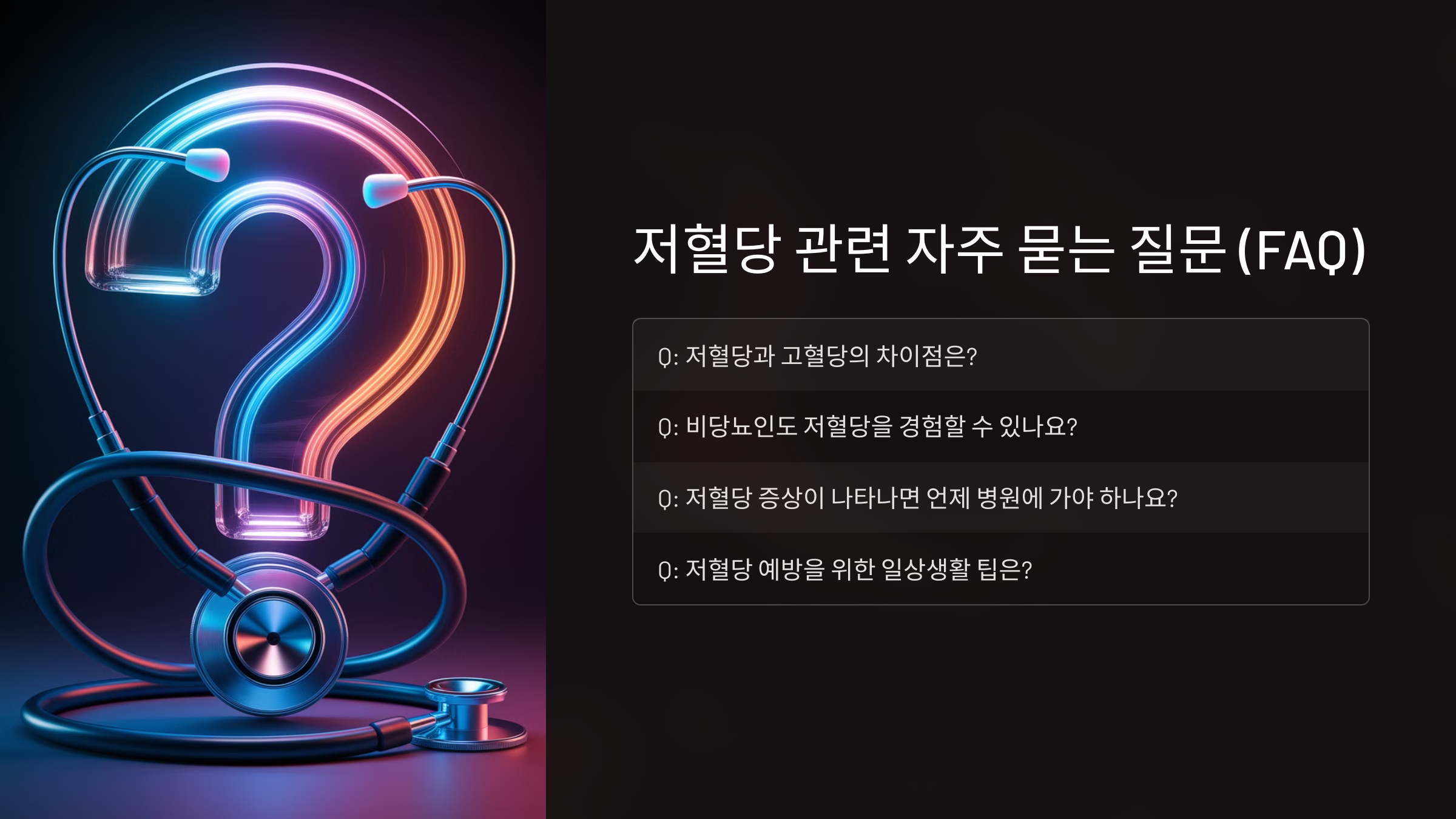 다음 섹션에서는 **저혈당과 관련된 자주 묻는 질문(FAQ)**을 정리해볼게요! ❓