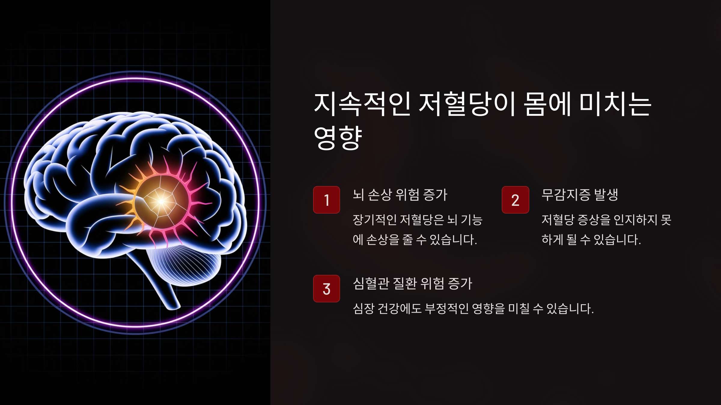 다음 섹션에서는 **저혈당이 반복되면 몸에 어떤 영향을 주는지** 알아볼게요! 👇