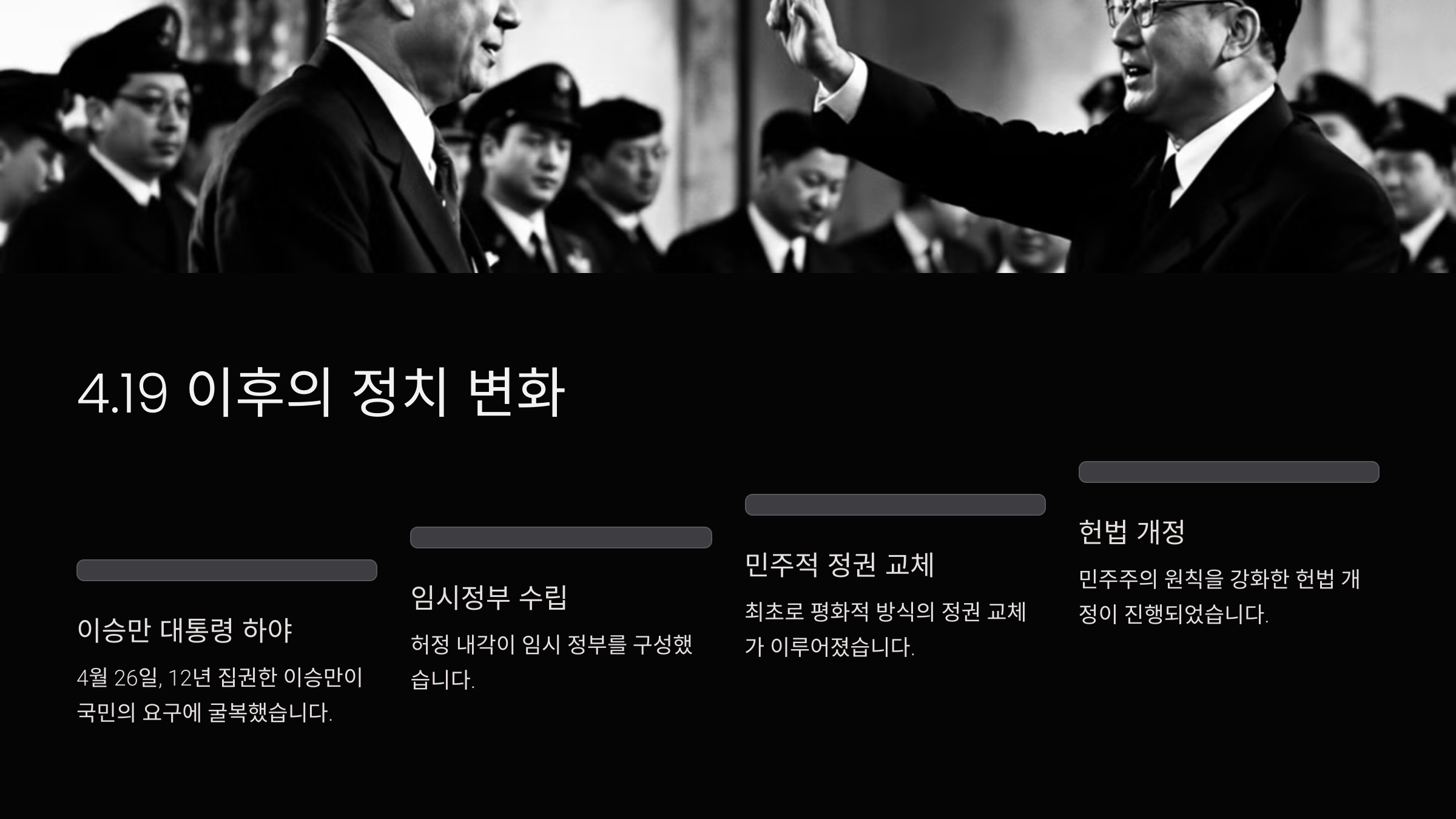 | 04.26 | 이승만 하야 발표 | 혁명의 승리 |
